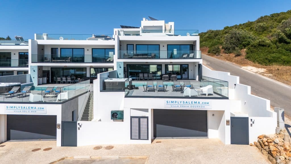 The brand-new Villa Praia Dourada (Golden Beach Villa) is a luxury Algarve ocean villa with breathtaking panoramic views over Salema and the Algarve coastline. This exquisite luxury modern villa is special – boasting a heated swimming pool, hot tub, games room and roof terrace. Perfectly located close to Salema beach, it is a short stroll to the village centre while Boco do Rio beach is also nearby. Accommodating up to 10 guests in 4 ensuite bedrooms, Villa Praia Dourada screams “wow factor” and is ideal for those who wish to live the dream on holiday in the Algarve.