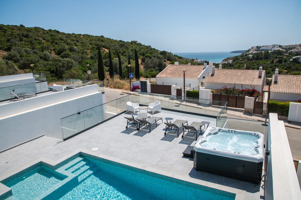 The contemporary Villa Vista Paraíso (Paradise View Villa) is a striking holiday retreat on the Algarve coast with sweeping views across Salema and the surrounding shoreline. This oceanfront Algarve holiday villa offers a heated pool, hot tub, games room and panoramic roof terrace. Ideally positioned just a short walk from Salema’s sandy beach and village centre, with the tranquil Boca do Rio beach also nearby, it accommodates up to 10 guests in four ensuite bedrooms. Designed to impress, this is the ultimate modern Algarve ocean villa.